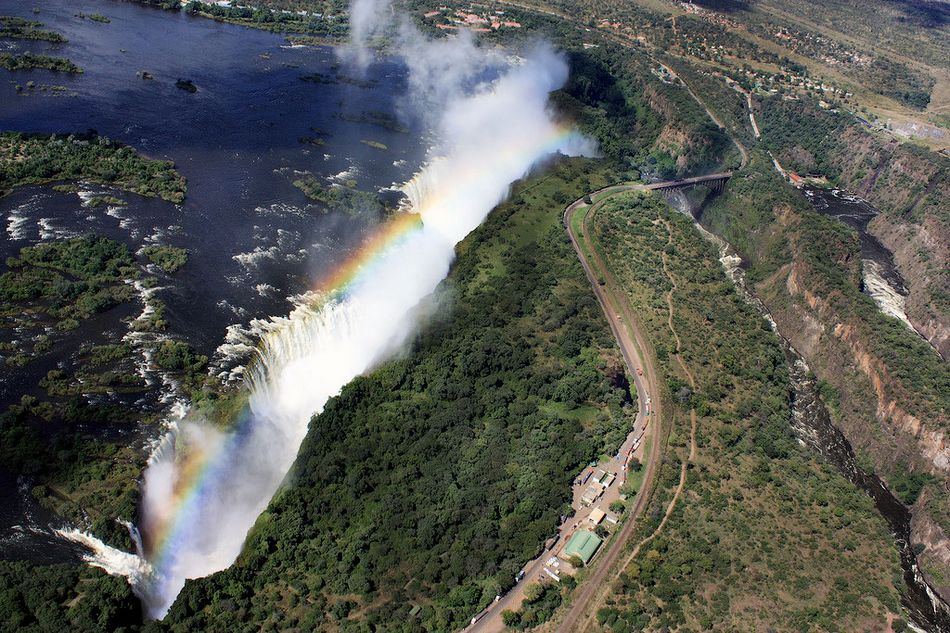 维多利亚瀑布位于非洲赞比西河中游,赞比亚与津巴布韦接壤处。宽1,700多米,最高处有108米,是世界上规模最大、最著名的瀑布。最早它是由欧洲的探险家戴维·利文斯敦在1855年发现,并以英国女王的名字为其命名的。