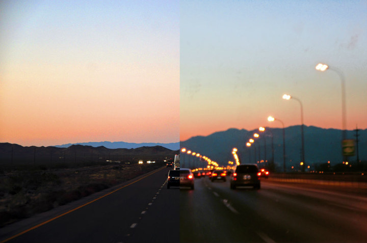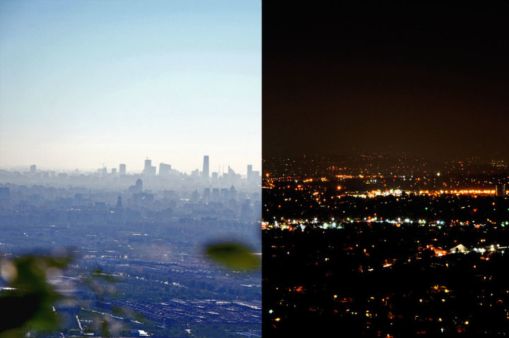 左:从香山上眺望北京,远处的高楼是CBD(最高楼国贸三期); 右:圣地亚哥夜景