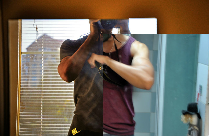 左:San Diego, 在房子里心血来潮; 右: 7个月后,在北京家里的厕所,又心血来潮。