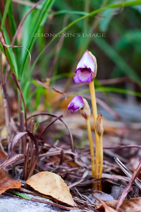 刚钻出岩缝的三叶半夏 Arisaema triphyllum, Jack-in-the-pulpit. 还需数日才能伸展开,妖冶如地狱火焰。